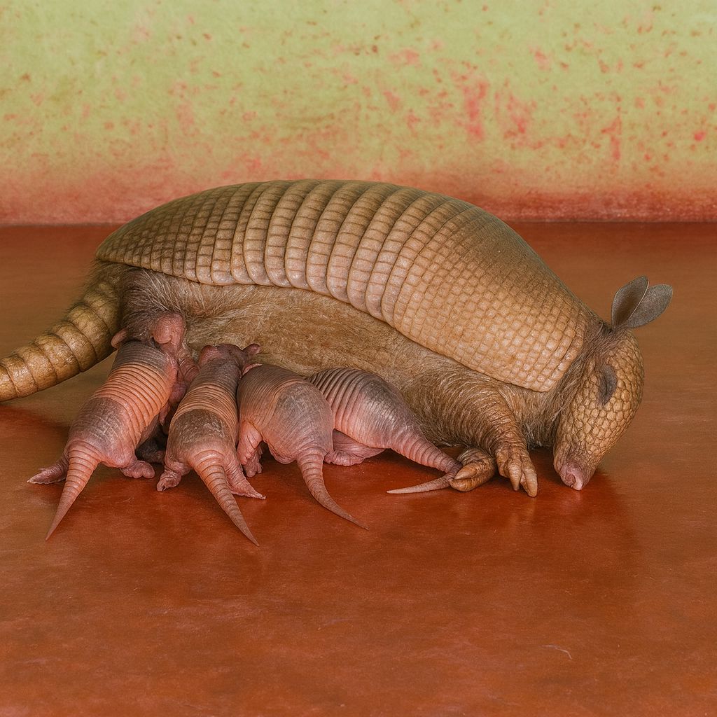 Meet the Nine-Banded Armadillo — the only mammal known to always give birth to identical quadruplets.
