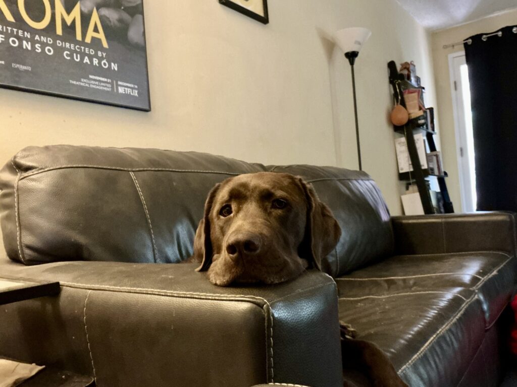 You weigh 80 pounds. You are a chocolate Labrador, which means you were engineered by math or Darwin or someone with a very dark sense of humor to carry a fur coat through the San Fernando Valley in April.