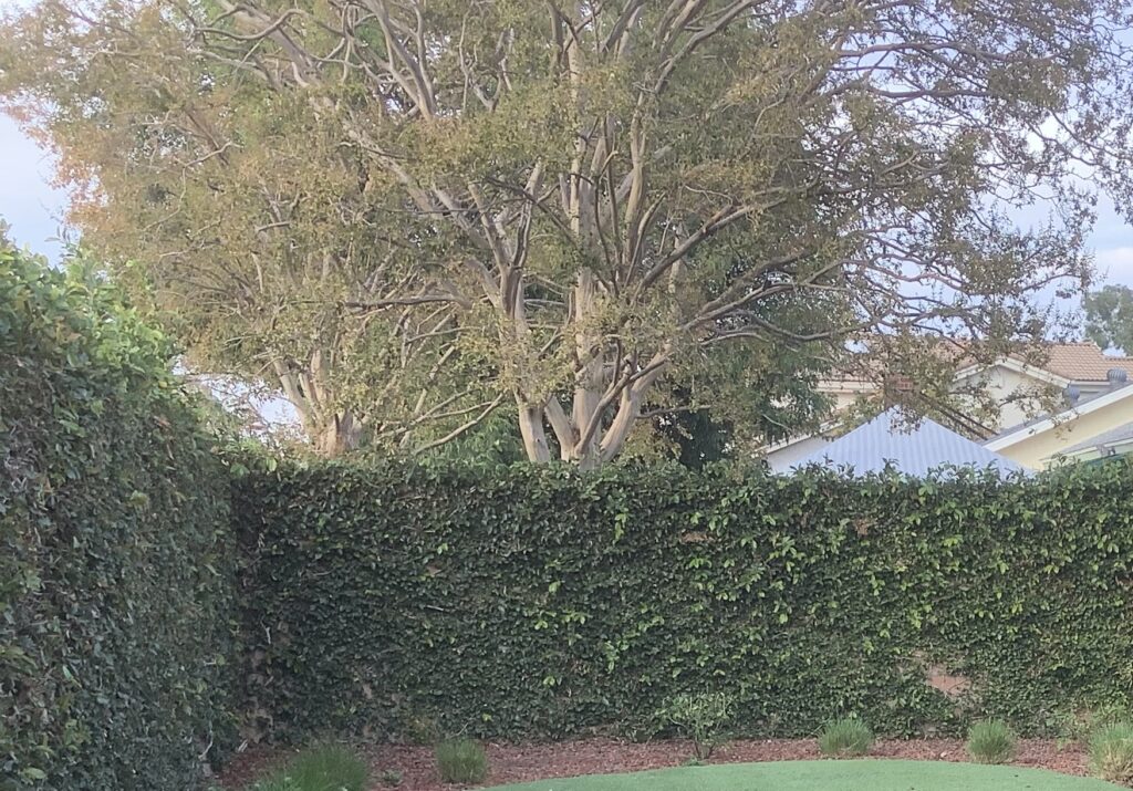 The fig vine climbs the fence
